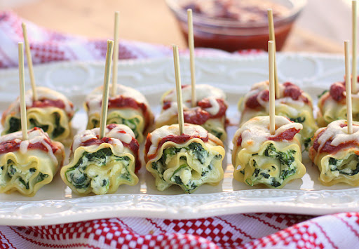 3. Pat noodles dry with a paper towel and lay them on parchment or wax paper. Cut each noodle in half widthwise. Fill each noodle with 2-3 tablespoons of the ricotta mixture, leaving an inch empty on one side of the noodle. Start rolling each noodle up, ending on the side that has one inch empty. This is so that the filling doesn't spill out the end.