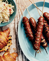 Crosshatch Hot Dogs on Grilled Croissants