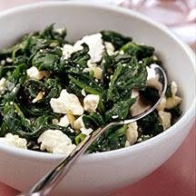 Add spinach, salt and pepper, stirring to combine. Cook until heated through, about 3 minutes; stir in feta. Yields about 1/2 cup per serving. 4 WW points.
