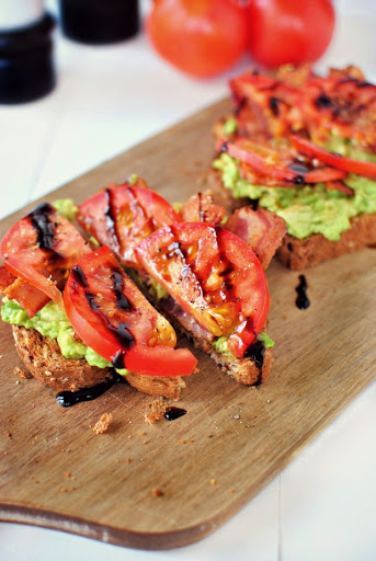 Bacon, Tomato + Avocado Smashed Toast with Balsamic Drizzle