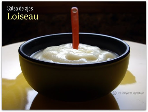 Después de un total de 5 "hervidos" como el anterior (en los que se atenuará el fuerte aroma del ajo), triturarlos con un par de cucharadas del agua de la última cocción y un poco de sal al gusto, añadiendo más agua cucharada a cucharada hasta conseguir una salsa cremosa y espesa, de la consistencia de la mantequilla batida.