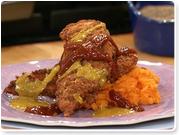 Serve topped with a drizzle of honey mustard or barbecue sauce and Smashed Sweet Potatoes with Honey alongside.