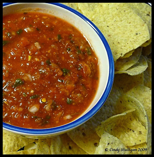 I usually use my small food processor to make this salsa. It really cuts down on the chopping and the amount of work involved in making the salsa.