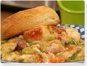 To serve, place a biscuit in each bowl, spoon the chicken mixture over the biscuits and top with a little more dill and parsley.