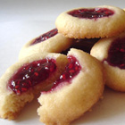 3. Roll dough into 1 1/2 inch balls, and place on ungreased cookie sheets. Make a small hole in the center of each ball, using your thumb and finger, and fill the hole with preserves.