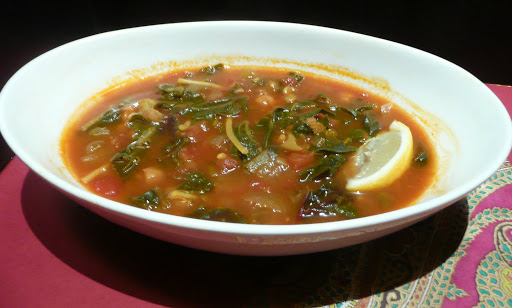 A marvelous vegetarian harira sampled at the United Nations' Delegates Dining Room—prepared by chef Mohamed Boussaoud, from the hotel La Mamounia in Marrakech—provided the inspiration for the following chicken-based version. In Morocco this soup is often made with lamb as well as chicken and is traditionally served after sundown during the month of Ramadan to break each day's fast.