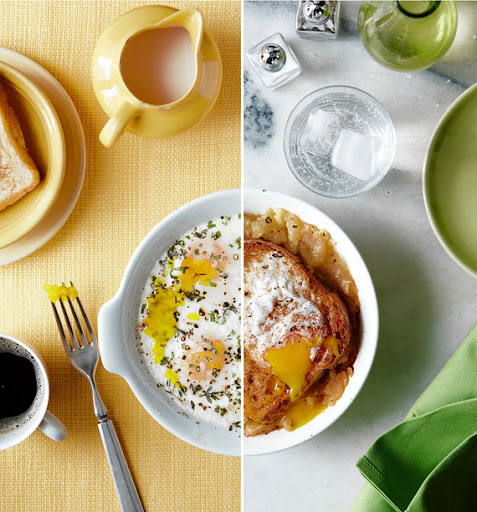 Arrange ramekins in a deep baking pan, then pour boiling water into pan so it comes halfway up sides of ramekins. Place pan in oven and bake until egg whites are set but creamy, 12-15 minutes.