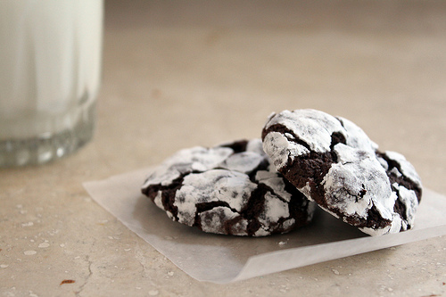 To form each cookie, roll a rounded tablespoon of dough between your palms to form about a 1 1/2 inch ball (mine were a little larger–you can get away with varying the size, just try and keep it consistent and adjust the time by a minute or two if you make them bigger). Roll the rounded ball in the powdered sugar, covering it really well. Place cookies 3 inches apart on the prepared sheet, making sure to set it firmly so it will stay in place.