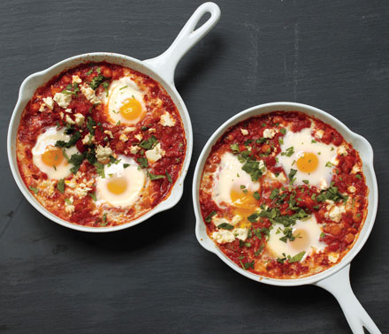Poached Eggs in Tomato Sauce w/Chickpeas & Feta