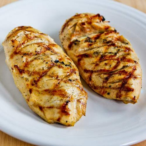 Take boneless, skinless chicken breasts and marinate preferably 24 hours in Italian Dressing before slow cooking on the grill. Talk about tasty and tender! You can continue to brush on the marinate as you grill. Make sure to cook enough to warm the next day--they will remain tender. (My wife Terry's recipe)