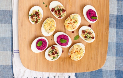 Crumbled chorizo, a splash of sherry vinegar and chopped piquant peppers add Spanish flair to the classic deviled egg. Serve as an hors d'oeuvre, or enjoy a few with a simple mixed salad for a light lunch.