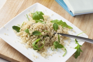 In a large bowl, combine the quinoa, broccoli, arugula and sunflower seeds. Add the dressing and the salt. Toss gently until combined.