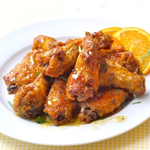 Drizzle the wings with the orange honey when serving.