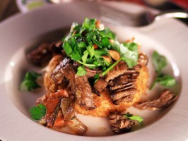 Serve on top of the Risotto Cakes and top with the fresh herb salad.