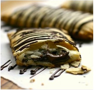 Step 2. Place the second half of pie crust over the top of the chocolate. Use a pizza cutter or crimped-edge knife to slice around the chocolate, leaving a 1/4″ space around each edge of the chocolate. Crimp the edges with a fork and transfer to a baking sheet.