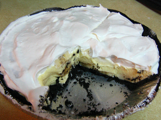 1. Slice bananas and cover cooled crust.