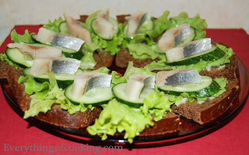 The open-faced herring sandwiches with cucumbers and lettuce are perfect starters or self-dish for light dinner.