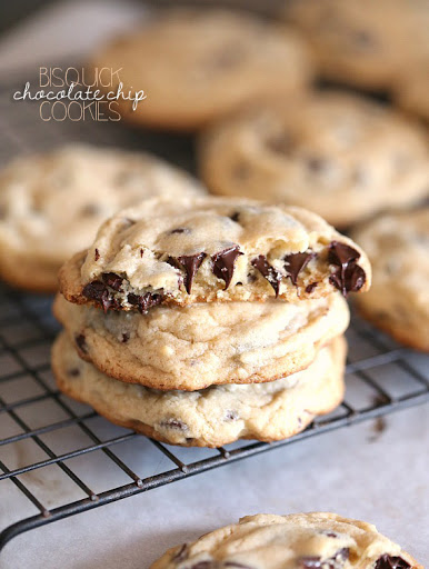 Anyhow, using Bisquick in cookies really does make a lot of sense. All the dry ingredients are pretty much mixed together for you! BUT a few wrong turns and these could easily be turned into Chocolate Chip Biscuits…and while that sounds delicious in it’s own right, when you want a cookie, a biscuit texture is no bueno.