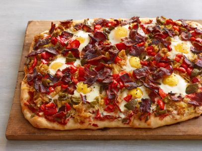 Prepare the pizza: Place the oven rack in the lowest position and preheat to 475 degrees F. Fry the bacon in a large skillet over medium heat, turning occasionally, until chewy, about 8 minutes; drain on paper towels. Chop into bite-size pieces.