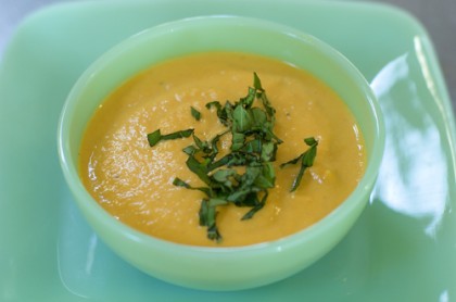 simmer carrots with broth, garlic and lemon zest for 20 min. remove from heat. in a blender, blend carrots and broth till smooth. add in half and half and juice of 1/2 lemon. stir. add nutmeg, salt and pepper. pour back into pan and heat.