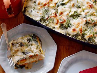 In the bowl of a food processor, combine the butternut squash, ricotta, and eggs until smooth and creamy. Remove to a bowl and stir in 1/2 cup mozzarella, the onion, roasted red pepper, and garlic mix. Season to taste with salt and black pepper.