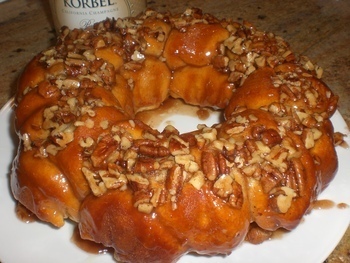 8) Sprinkle half the pecans and half the remaining cinnamon mixture into mold
