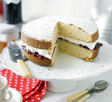 Spread the jam onto one cake and top with the cream. Sandwich the cakes together and dust with icing sugar