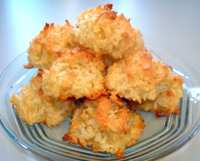Scoop heaping tablespoonfuls of the coconut mixture about 1 inch apart onto the baking sheet. Use your fingers to form into pyramids. Bake until golden brown around the edges, 20 to 25 minutes. Let cool 10 minutes on the baking sheet, then transfer to a rack to cool completely.
