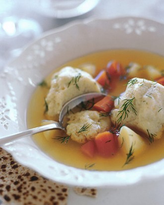 To serve, fill the soup bowls evenly with soup and vegetables, allotting each person one or two matzo balls, depending on his or her appetite. Garnish with fresh dill, and serve immediately.
