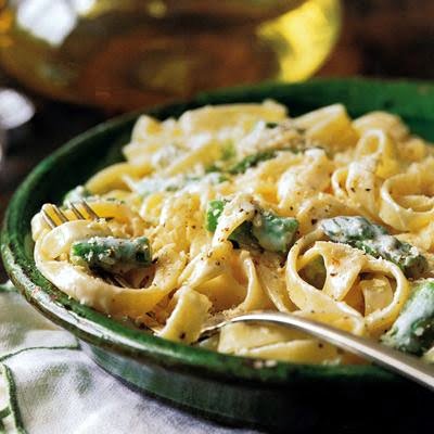 Fettuccine Alfredo with Fresh Mixed Herbs: Eliminate the asparagus. Toss in 3 tablespoons of chopped fresh herbs, such as basil, parsley, and/or chives, at the end.