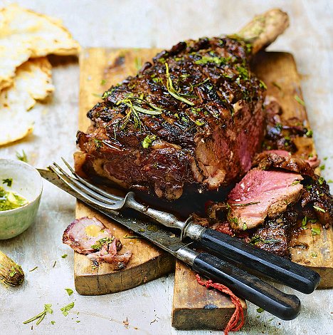 Trim the fat and sinew from the lamb leg. Put it in a resealable gallon plastic bag and pour in the in the marinade. Refrigerate for 12 to 24 hours. Strain and reserve the marinade.