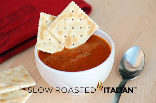 Add the canned tomatoes, basil, Italian seasoning, chicken broth and water. Add the oven-roasted tomatoes, including the liquid on the baking sheet.