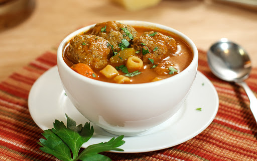 Meanwhile combine all meatball ingredients in a large bowl. Mix with hands to combine. Using a 1 tablespoon scoop to portion, lightly shape the scoops into meatballs using your hands to roll them. Drop them into the broth, distributing them evenly around the pot. Cover. Allow to boil for 5 minutes. Stir meatballs gently.