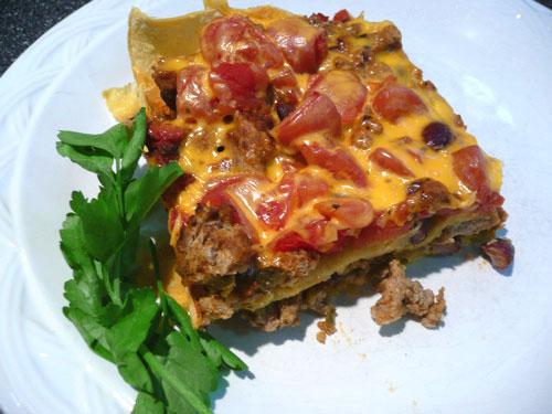 1. Spray 9x13” pan and place 4 tortillas in pan.