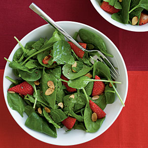 2. Combine strawberries, ¼ cup vinaigrette, mint, and spinach in a large bowl; toss gently to coat. Sprinkle with almonds and pepper; serve immediately. Store remaining vinaigrette, covered, in refrigerator for up to 5 days.