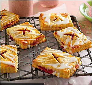 4. Preheat oven to 350°. Unwrap dough; roll to 1/8-inch thickness on a floured surface. Cut dough into 48 rectangles, using a 2 1/2- x 3-inch cutter and rerolling scraps. Place half of dough rectangles 2 inches apart on parchment paper-lined baking sheets. Top each rectangle with about 1 Tbsp. strawberry mixture. Dampen edges of dough with water, and top with remaining dough rectangles, pressing edges to seal.