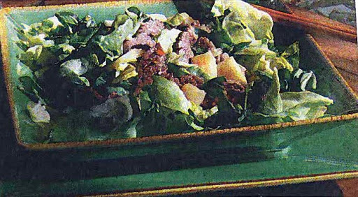 Add the dressing and basil leaves to the beef and gently toss to combine the flavors. Arrange the beef in the center of the salad and drizzle the remaining dressing over the top.