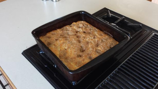 3. Mix dough ingredients until just incorporated (do not overmix) and put in baking dish.