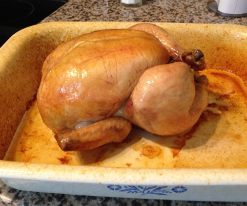 * Remove the chicken from the oven when the meat thermometer reads 175°- 180°F; the temperature will continue to rise as the chicken stands.