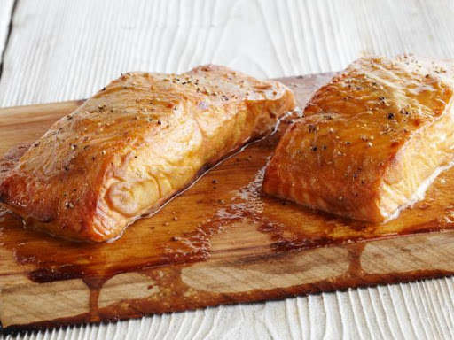 Set grill for indirect grilling and heat to medium-high. Place the cedar plank in the center of the hot grate, away from the heat. Cover the grill and cook until cooked through, around 20 to 30 minutes. The internal temperature should read 135 degrees F. Transfer the salmon and plank to a platter and serve right off the plank.