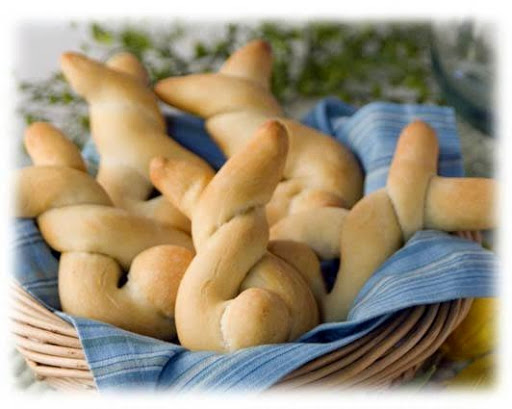 Cut a small piece off of one roll for a tail. Roll remaining piece into a 12 to 14-inch rope with pointed ends. Twist top of rope together. Place on a large sprayed baking sheet and pull pointed ends apart for ears. Roll small cut off piece into a ball for the tail. Make an indentation with your finger at the spot for the tail. Moisten the tail with water and place in the indentation. Repeat the above steps with remaining rolls. Cover with sprayed plastic wrap and allow to rise 30-45 minutes. Remove wrap and bake at 350°F 15-20 minutes or until golden brown. Enjoy with butter for your Easter Dinner.