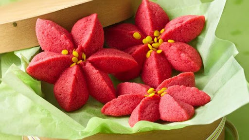 Heat oven to 375°F. On ungreased cookie sheets, place balls about 2 inches apart. With sharp knife, make 6 cuts in top of each ball about three-fourths of the way through to make 6 wedges. Spread wedges apart slightly to form flower petals (cookies will separate and flatten as they bake). Sprinkle about 1/8 teaspoon yellow candy sprinkles into center of each cookie.