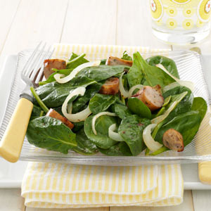 mustard and remaining oil. Drizzle over spinach; toss to coat. Add