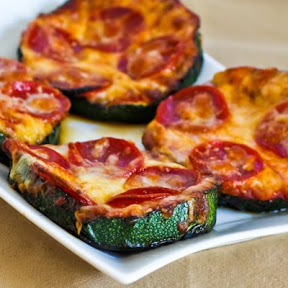 2. Spoon pizza sauce on the grilled side of zucchini and add the rest of the toppings. Place the zucchini back on the grill 7-8 min or put under the broiler for 5-6 min depending on your preferred doneness.