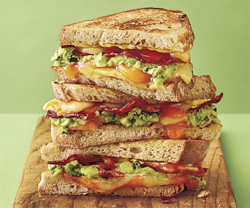 This is a favorite combination at The Cheese Truck in New Haven, where it’s actually made with six different cheeses (Comté, Gruyère, and raclette as well as the ones listed below). This streamlined version calls for Cheddar for sharpness, gouda for nutty sweetness and color, and provolone for stretch. Pulling apart the cooked sandwich to add the add-ins keeps the bacon crisp and the guacamole cool.