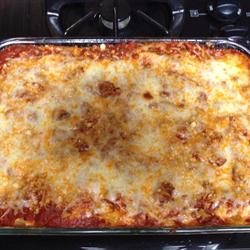 3. In the bottom of a shallow 2-quart casserole dish, spread half the tomato sauce. Top with ziti, then ricotta mixture and remaining sauce. Sprinkle with remaining 1/2 cup Parmesan and remaining mozzarella. Place casserole on a rimmed baking sheet, and bake until top is browned and sauce is bubbling, 20 to 25 minutes.