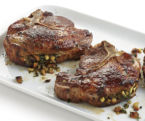 Pork Chops Stuffed with Pine Nuts and Herbs