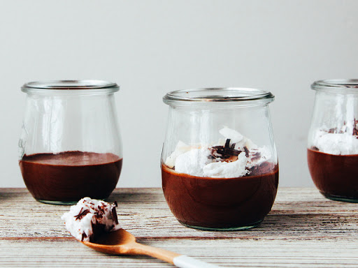 If you happen to overmix the the mousse and it cannot be poured into the jars, return the double boiler insert to the pot of water, melt the mixture completely, then set insert over the bowl of ice cubes and start the mixing process again.
