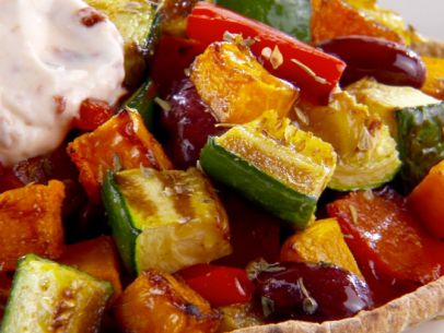 Spoon the vegetable mixture on top of the crispy pitas and serve with a dollop of the chipotle cream.