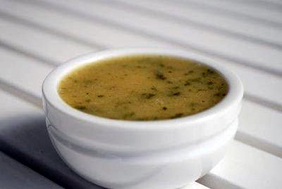 Vispa ihop vinäger och senap i en skål. Vispa i övriga ingredienser. Dressingen går bra att förvara i kylen i ca 1 vecka.